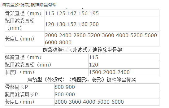 镀锌除尘骨架类型及技术参数